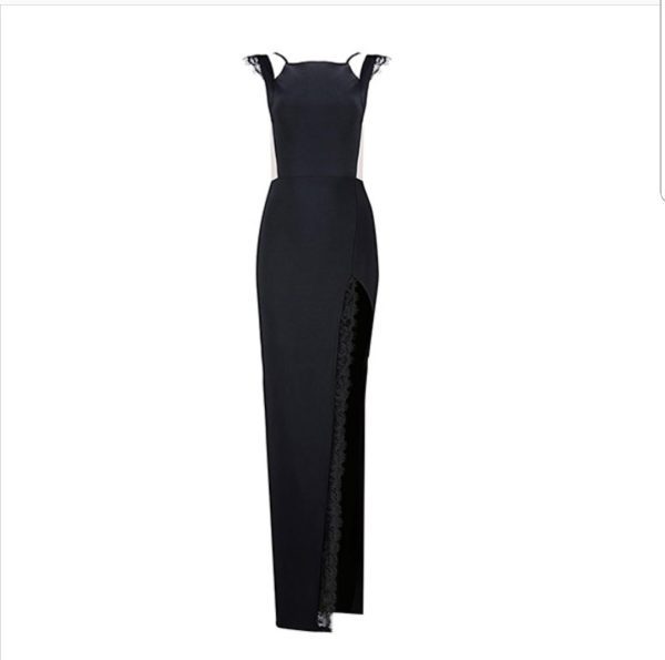 Pristine Glam Rayon Long Sleeve fabulous see-through black diamond hot fix elegant lace/bandage evening dress.